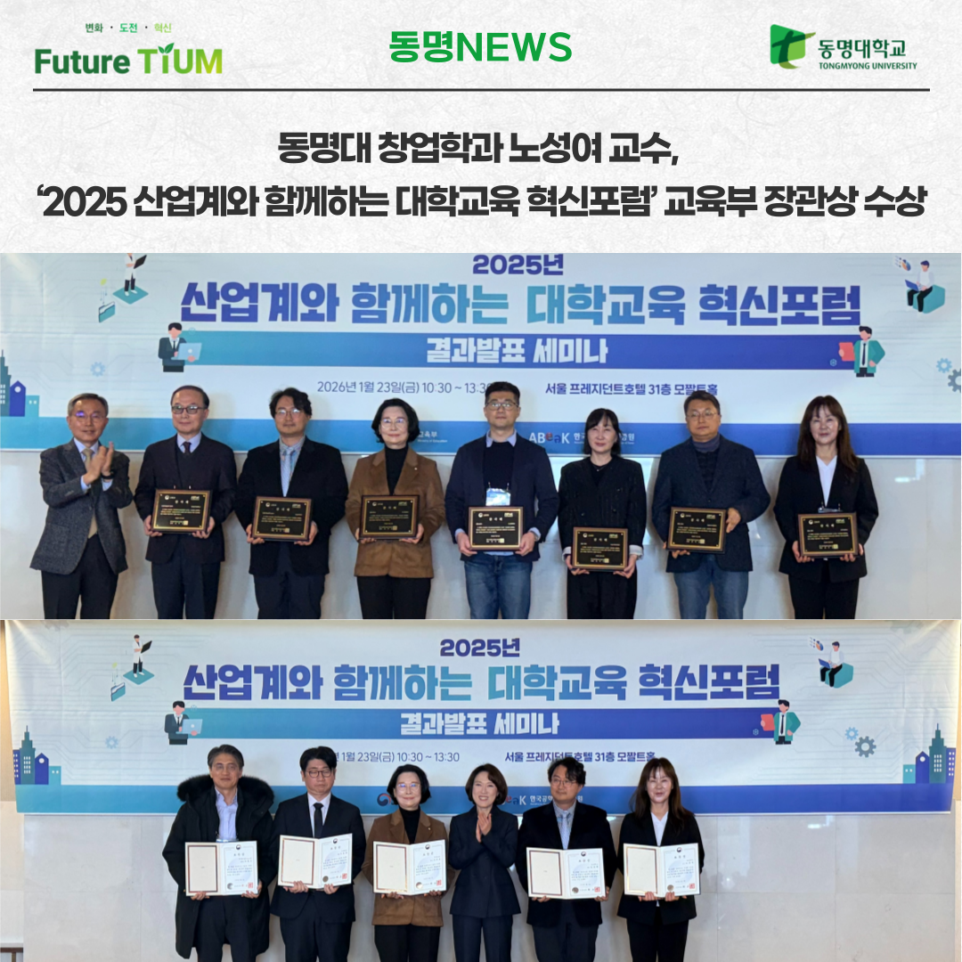 창업학과 노성여 교수, ‘2025 산업계와 함께하는 대학교육 혁신포럼’ 교육부 장관상 수상